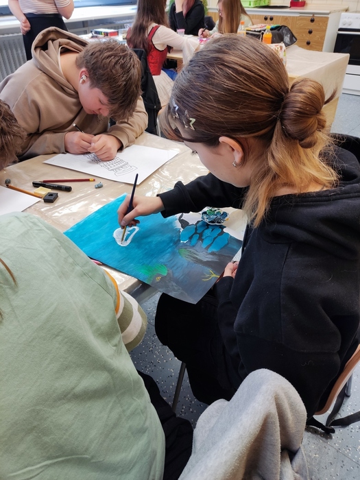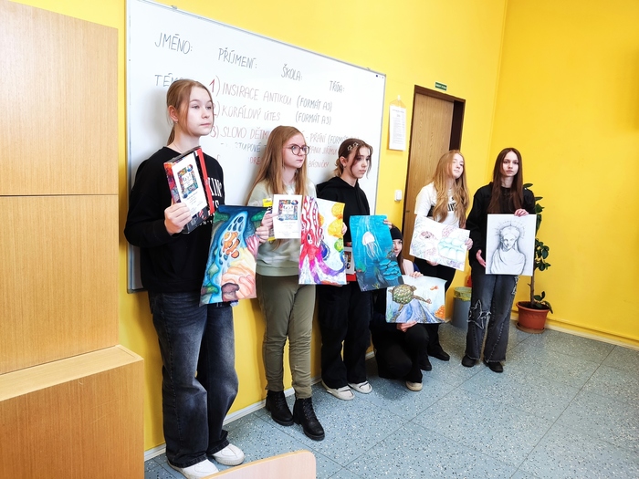 Děvčata se rozhodla pro téma „Korálový útes“ a „Inspirace antikou“, moc se jim dařilo a za svou práci získala 1. místo Míša Voglová a 3. místo Eliška Tyrajová.