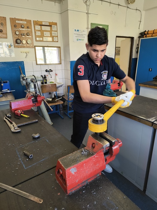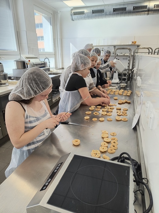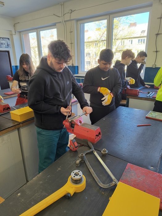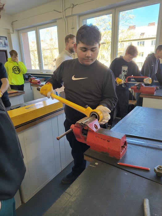 Na začátku dubna jsme opět navštívili Střední školu techniky a služeb v Karviné, kde jsme si z projektu Sdílená výuka vyzkoušeli nabídku dalších učňovských oborů. Jedna skupina pracovala v cukrářské dílně, další žáci si vyzkoušeli obrábět brýlové čočky a poslední skupina navštívila instalatérskou dílnu, kde se snažili řezat závity, těsnit spoje a krátit trubky. Akce se vydařila, věnečky se povedly, k žádnému úrazu nedošlo.