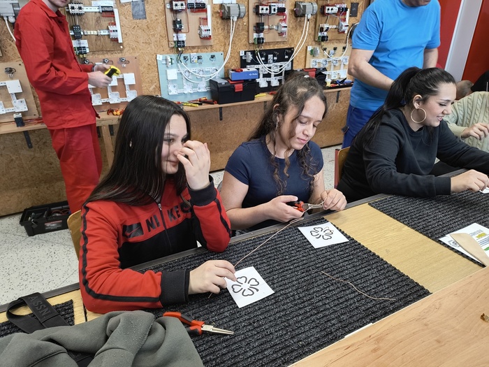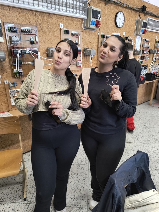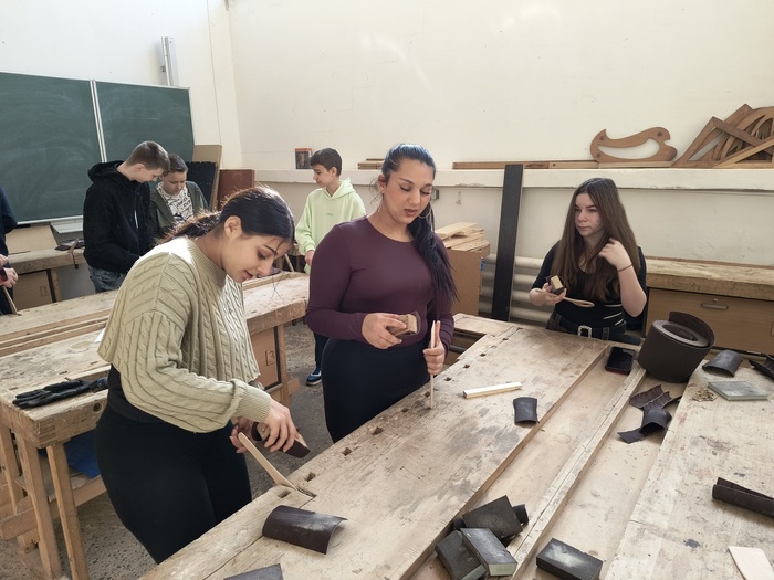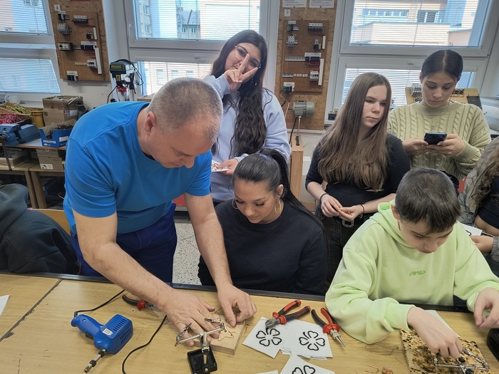 Ve třetině března jsme navštívili Střední školu techniky a služeb v Karviné, kde jsme si z projektu Sdílená výuka vyzkoušeli nabídku tří učňovských oborů. Snažili jsme se obrobit dřevěné obracečky a vařečky v truhlářské dílně. U automechaniků jsme měnili kola a u oboru elektrikář jsme měli možnost vytvarovat měděné drátky do čtyřlístku a poté je spojovat cínem, tedy pájet. V dubnu se do Karviné vrátíme a vyzkoušíme si jiné učňovské obory.